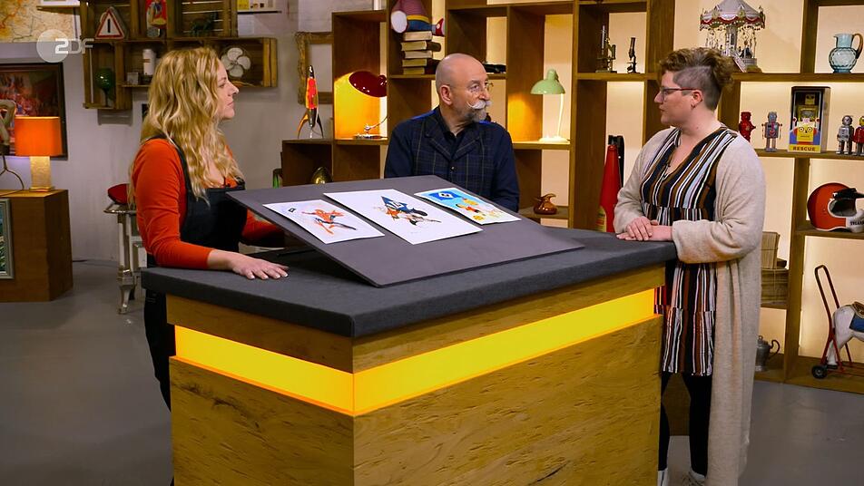 "Ich hab' keine Ahnung von Fußball", gab Horst Lichter der Verkäuferin flüsternd zu. Doch auch als es um den Preis ging, regierte der sonst so gescheite Gastgeber unwissend. "Hier bin ich lost." Die Bewertung war wirklich nicht einfach. Es handelte sich schließlich um die namhaften Comiczeichner Romano Molenaar, Fabio Bono und Dick Heins, die hier 2019 besondere Unikate schufen. Aber: "Wenn der HSV nicht drauf wäre, würde etwas mehr gehen", war sich die Expertin sicher. Nadines Wunschpreis von 100 Euro konnte sie gut mitgehen. 90 bis 150 Euro waren dafür drin. Konnte es im Händlerraum für die Werke eine angemessene Ablösesumme geben?