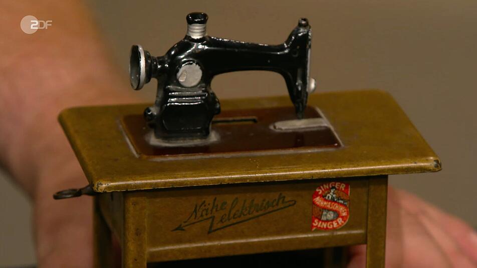 Als Elisabeth und Konrad aus Palling am Expertenpult standen, wechselte Lichter die Taktik, um Deutschmanek weiter zu necken: "Ich glaube, das ist eine Spardose, mein Freund, sieht man doch", sagte er frech. "Er hatte so verrückte Ideen und dachte, damit kann man kleine Kleider nähen - und so einen Blödsinn", lachte Lichter über Deutschmanek. Die kleine Nähmaschine hatten die Verkäufer beim Ausräumen der elterlichen Wohnung gefunden, erzählte Konrad. Mehr wussten sie nicht über den Alltagsgegenstand im Miniaturformat - inklusive Münzschlitz.