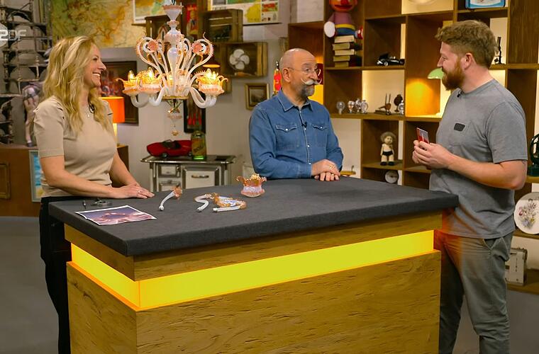Allerdings deutete sie auf den freigelegten Teil: "Das wäre Murano-untypisch mit dem Holz." Metall wäre üblicher. Horst Lichter überlegte: "Ist das denn dann noch original oder ist das vielleicht sogar mal ausgetauscht worden?" Raßbach nickte: "Mein Gefühl sagt mir, es ist ausgetauscht worden."