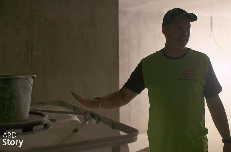 Christian Klaus hat sich unter seinem Wohnhaus einen atomsicheren Bunker bauen lassen - mit 45 Zentimeter dicken Wänden aus Stahlfaserbeton. Er nimmt die Filmemacher mit in die knapp acht Meter tiefen Katakomben. Unter anderem Betten, eine Stromversorgung und ein 1.000-Liter-Notwasserspeicher stehen hier auf dem Einrichtungsplan. Klingt nach Endzeit. Weltuntergangs-Fantasien habe der 46-Jährige allerdings nicht direkt. Er sei auf die Bunker-Idee durch seinen Kontakt zur Ukraine gekommen.