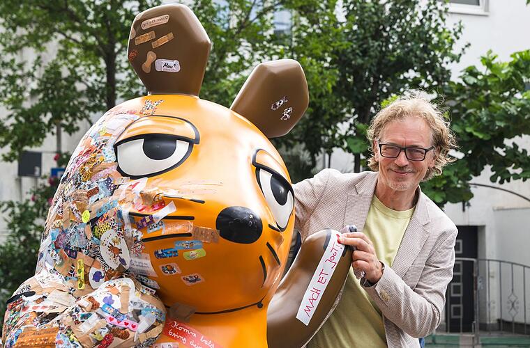 Statt der menschengroßen Skulptur prangt am Vierscheibenhaus in der Kölner Innenstadt derzeit ein Maus-Aufkleber auf einer Glasfront. "Bin bald wieder da", lautet die optimistische Botschaft. Unterdessen, so berichtet jetzt der WDR, zeige sich die Solidarität der Fans ungebrochen. Nachdem bereits die Brandflächen auf der Figur mit Pflastern versehen worden waren, geschehe das Gleiche nun mit dem Aufkleber.