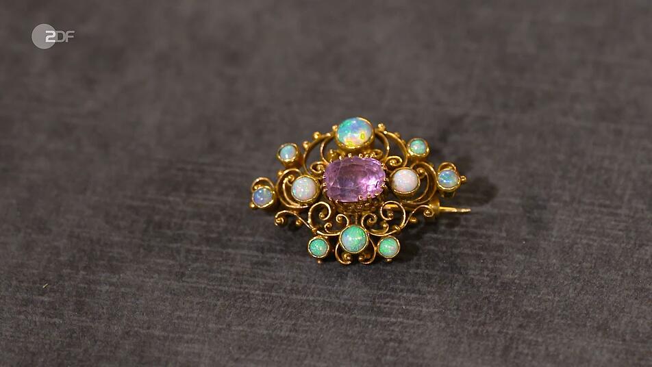 Ebenfalls zum Verkauf angeboten wurde die Goldbrosche mit Opalen und Amethysten aus der Zeit um 1890 mit einem geschätzten Wert von 500 bis 600 Euro. Von Susanne Steiger bekam die Verkäuferin sogar 700 Euro, denn sie schwärmte: "Das ist echt ein Traum! Wunderschön! So ein toller Entwurf! So farbenfroh, so frisch, so fröhlich!"