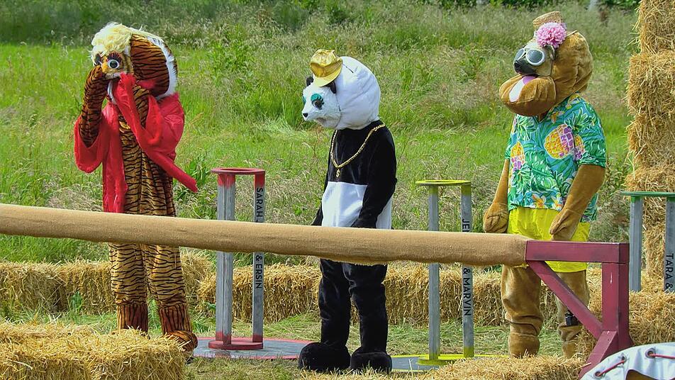 Nein, der laute Protest der unruhigen Gruppe wirkte dann doch: Sarah lehnte das Angebot ab und zog mit Ersin gegen Tara und Dennis, Jenny und Marvin sowie Edda und Micha ins Halbfinale ein. Das bestand aus einem "Sommerhaus"-Klassiker: In lustige Plüschkostüme ohne Augenlöcher gesteckt, mussten die Männer blind einen Parcours absolvieren und dabei je vier Bälle in ihrer Teamfarbe sammeln, angeleitet von ihren Partnerinnen. Marvin war schon zu Beginn schwindlig, dennoch erfüllte er die Aufgabe am zweitschnellsten - hinter Micha.