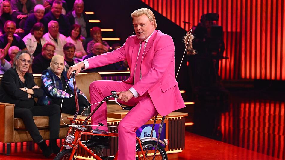 In ihrer Quizshow "Wer weiß wie wann was war?" setzen Barbara Schöneberger und Stefan Raab auf jede Menge Nostalgie. Naheliegend, dass in der zweiten Ausgabe der RTL-Show auch ein Bonanza-Rad nicht fehlen durfte. "Die haben die Buchse zu eng gemacht", schwante Raab schon beim Aufsteigen auf das Gefährt Böses. "Ist quasi unfahrbar." Bei einer Proberunde durchs Studio machte der Showmaster in pinkfarbenem Anzug, mit Zahnprothese und Trump-artiger Perücke aber eine gute Figur - noch.