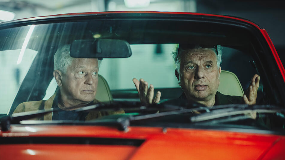 Szenenfoto aus "Tatort: Unvergänglich": Kriminalhauptkommissar Ivo Batic (Miroslav Nemec) und Kriminalhauptkommissar Franz Leitmayr (Udo Wachtveitl) sitzen im Porsche in der Tiefgarage ...
