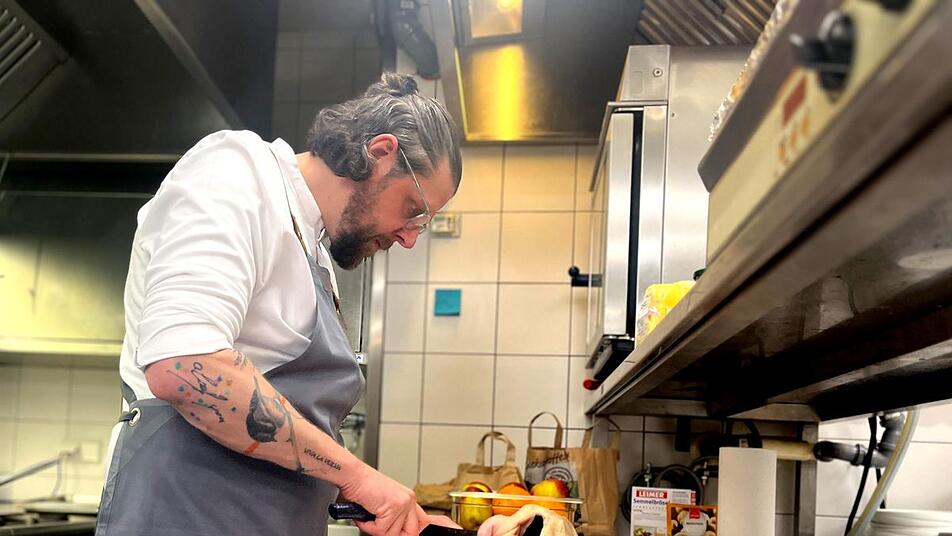 Natürlich muss Mälzer heute alle Kartoffeln von Hand schälen. Überall hinterlässt er ein Schlachtfeld. Um die Schalotten spritziger zu machen, besprüht er sie mit Sekt und spritzt dabei die ganze Küche voll. "Das war schon heftig", wischt Stemberg schnell die Gerätschaften wieder sauber. "Lass den Mälzer nie wieder in deine Küche, außer du hast genug Leute zum Putzen."