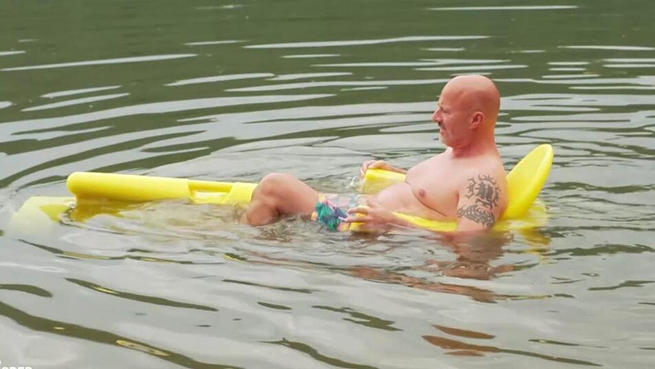 Doch Hubert hält es keine Sekunde in der Matte, es macht sofort Plumps. Erst beim zweiten Versuch spürt er die Heizung: "Warmer Popo ist ganz wichtig." Komfortabel sieht jedoch anders aus: "Für Survival-Leute ist das auf jeden Fall was. Aber nicht für uns." Die 180 Euro investiert Hubert lieber fürs All-Inclusive-Hotel.