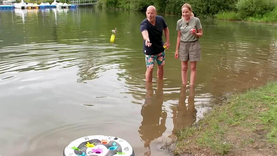 Nicole und Detlef Steves, die Urgesteine bei "Hot oder Schrott", dürfen am See den quietschgelben "Subalo" testen, ebenso Steffi und Roland Bartsch am Meer. "Sieht aus wie eine riesige Bananenschale", beschreibt Roland das gelbe Plastikungetüm. Steffi findet eher: "Sieht aus wie so ein Kampfjet oder so." Detlef erkennt darin jedoch das Wasserfahrzeug: "Ey, das is geil!" Nachdem er sich mit dem kalten Wasser angefreundet hat, stellt er fest: "Das ist witzig!" Aber: "Lenken ist schwierig." Nicole gibt ihm noch einen weisen Rat mit über den See: "Klemm dir nix ein!" Zu spät, Detlef zetert in der Mitte des Wassers: "Pfuauuu! Meine Klötze!" Es folgt ein Mix aus Jauchzen und Schreien.