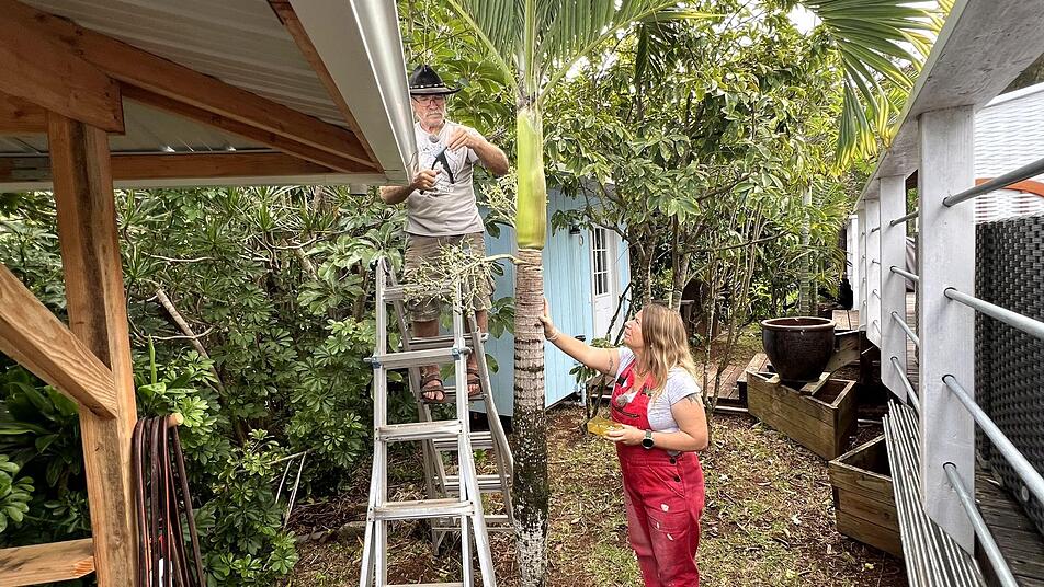 Allerdings: Perfekt ist natürlich auch auf "Konny Island III", der nie wirklich fertig gestellten Dauerbaustelle beim sich ständig verändernden und vergrößernden Sehnsuchtsdomizil der beiden Reality-Stars auf Hawaii, nichts. Noch nicht zumindest. Konny Reimann folgt der Devise: Es gibt immer was zu tun. Also packt er die Dinge an und werkelt fleißig an einer neuen Dachterrasse für das Beachhouse und holt sich ölverschmierte Finger beim Herumschrauben an einem alten Schulbus. Im Hintergrund läuft dabei der alte Geier-Sturzflug-Hit: "Jetzt wird wieder in die Hände gespuckt".