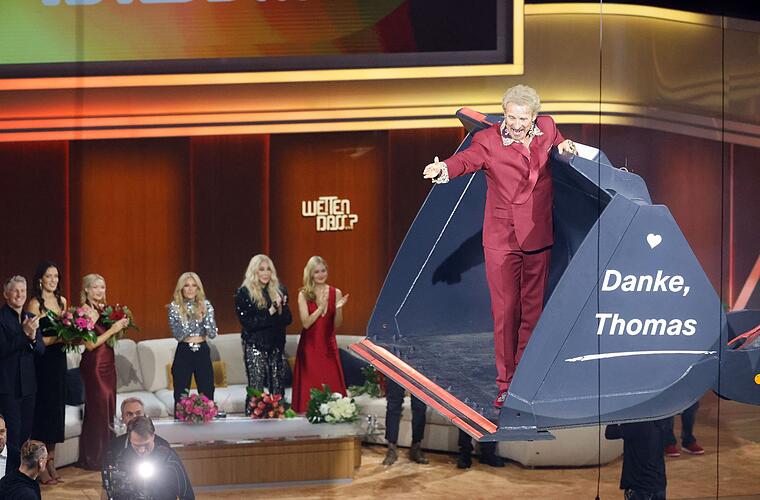 Zum Schluss erklärte der Entertainer nochmal, was ihn bewog, nun endgültig Schluss zu machen mit «Wetten, dass..?»: Zum einen wolle er nicht, dass «man mir meine Gäste erklären muss». Zum anderen habe er im Fernsehen immer das gesagt, was er auch zuhause gesagt habe. Inzwischen rede er im Fernsehen anders als zuhause - weil er fürchte, dass er einen «Shitstorm» erzeugen könnte.
