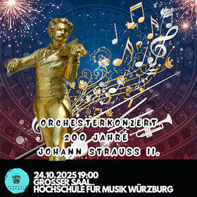 Feiern Sie mit uns den 200. Geburtstag des „Walzerkönigs“! Das Orchester Harmonie Würzburg lädt am Freitag, den 24. Oktober 2025 um 19 Uhr, zu einem ganz besonderen Konzert ein. Im Großen Saal der Hochschule für Musik zu Würzburg entführen wir Sie in die schillernde Welt des Wiener Walzers und der Polka.