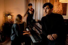 … oder wie es in den Schlusszeilen von „Famous blue Raincoat” lautet: Sincerely, L. Cohen. Einen musikalischen Gruß, ernsthaft und aufrichtig, widmet der Musiker Alessandro Mega (Gesang und Gitarre) zusammen mit Anja Lenz (Piano und Gesang) und Franziska Argmann (Violine und Gesang) dem Lebenswerk des kanadischen Poeten und Singer-Songwriters Leonard Cohen. Das Trio interpretiert mit Songs wie „So long Marianne”, „Bird on the Wire”, „Dance me to the End of Love” und natürlich „Halleluja” die Lebensgeschichte des Künstlers. Die Lieder erzählen von Höhen und Tiefen, Sehnsüchten und Abgründen aus dem inspirierenden Leben Leonard Cohens. Die charakteristische, raue Stimme des Sängers wird begleitet von zerbrechlich anmutenden Frauenstimmen. Das kraftvolle Piano und der treibende Bass harmonieren mit zartem Violinspiel und Gitarrenklängen. So entsteht eine musikalische Landschaft aus Gegensätzen. Mal düster und melancholisch, mal heiter und voller Ironie. Ganz so wie das Leben Leonard Cohens, das aus so vielen Facetten bestand: Kunst und Musik, Spiritualität, Glauben, Sexualität, Leidenschaft und Melancholie.
