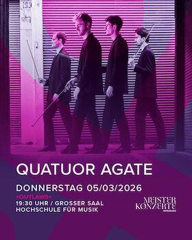 Mit dem Programm «Outlaws» entführt das mit dem ECHO Rising Star ausgezeichnete Quatuor Agate das Publikum auf eine Klangreise durch vier Jahrhunderte musikalischer Nonkonformität. Es begegnen sich düstere Reflexionen der Renaissance, leidenschaftliche Aufbruchsimpulse und subversiver Widerstand. Die Kammermusik entfaltet dabei ein dichtes Mosaik persönlicher Geschichten, in dem jeder Ton Konventionen sprengt und den unerschütterlichen Geist künstlerischer Rebellion feiert.