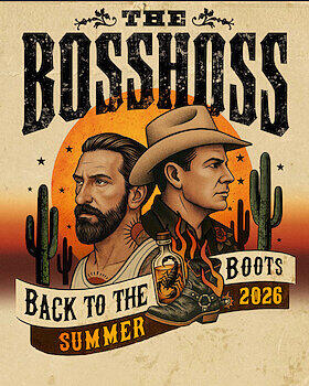 Live auf der Bühne sind The BossHoss ein unvergessliches, explosiv-energiegeladenes Erlebnis – pure Power, die mitreißt! Wenn die sieben charismatischen Hauptstadt-Cowboys, allen voran die beiden Frontmänner Alec „Boss Burns“ Völkel und Sascha „Hoss Power“ Vollmer, auf der Bühne stehen, kommen Rock’n’Roll-Fans voll auf ihre Kosten. Mit dem Sound des brandneuen Albums „Back To The Boots“ (ET 19.9.) kehren sie auch live zu ihren musikalischen Wurzeln zurück: rauer, roher, ehrlicher denn je. Gekoppelt mit ihren Greatest Hits von „Don’t Gimme That“, „Dos Bros“, „Do It“, „Jolene“ und vielen mehr lässt die Band keine Wünsche offen. Hier wird live gerockt, ohne Kompromisse! Einlass: 18.00 Uhr Hier Tickets bestellen