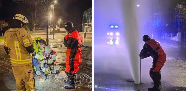 Riesige Wasser-Fontäne in Bamberg: Feuerwehr mit Überlebensanzug im Einsatz
