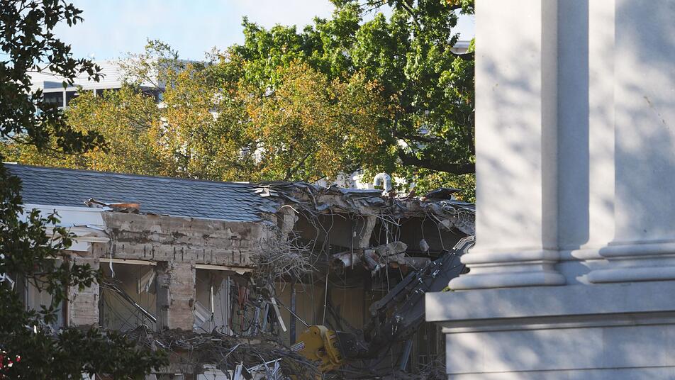 Für den Bau eines von US-Präsident Donald Trump geplanten Ballsaals haben am Ostflügel des Weißen Hauses Abrissarbeiten begonnen. In einem Post auf seiner Plattform Truth Social bestätigte Trump den Baubeginn und schrieb, der Saal werde zwar vollständig separat vom Weißen Haus entstehen, der Ostflügel werde im Zuge dessen aber «modernisiert und schöner denn je». Der Abriss betrifft nun Gebäudeteile, in denen traditionell die Büros der First Lady untergebracht sind.