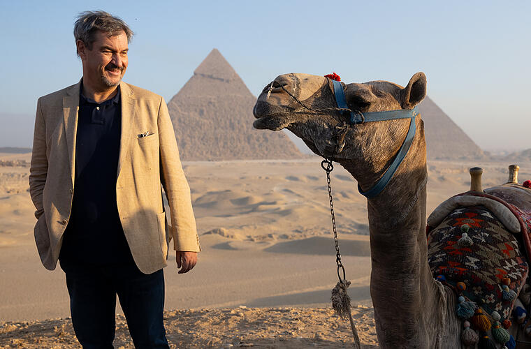 Wer Söder kennt, weiß, dass er während seiner Reise nach Ägypten nicht an einem fototauglichen Abstecher zu den Pyramiden vorbeikommen wird. "Ägypten ist ein spannendes Land, schon aufgrund seiner großen Geschichte", sagt er.