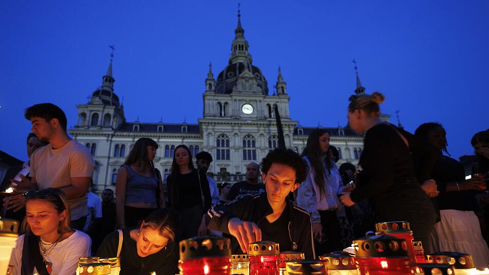 Die Trauer im Land und in Graz, der mit 300.000 Einwohnern zweitgrößten Stadt Österreichs, ist groß. Am Abend kamen Hunderte Menschen zu einem Trauergottesdienst in die Stadt, im Zentrum bildeten zahlreiche Kerzen in Erinnerung an die Toten ein Lichtermeer. Die österreichische Bundesregierung unter Kanzler Christian Stocker (ÖVP) hatte eine dreitägige Staatstrauer beschlossen - die Trauerminute ist Teil davon.