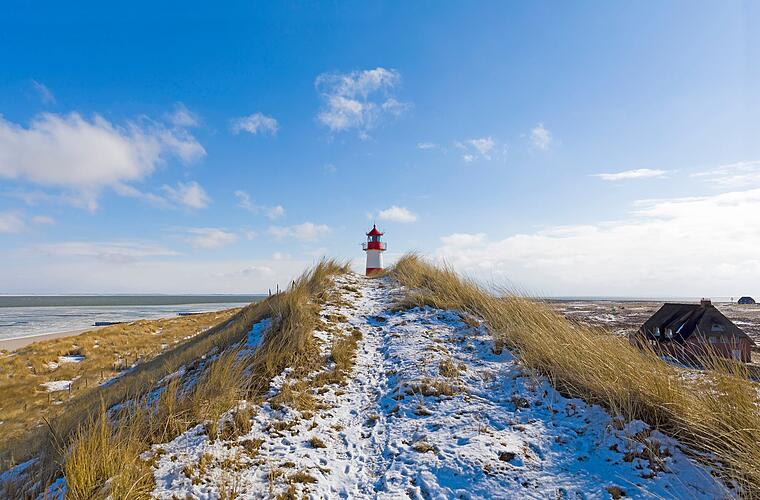 Sylt ist die größte nordfriesische Insel Deutschlands und bekannt für ihre reetgedeckten Häuser und langen Sandstrände. Im Winter bietet die Insel eine malerische Kulisse, kombiniert mit Wellnesshotels und gemütlichen Restaurants.