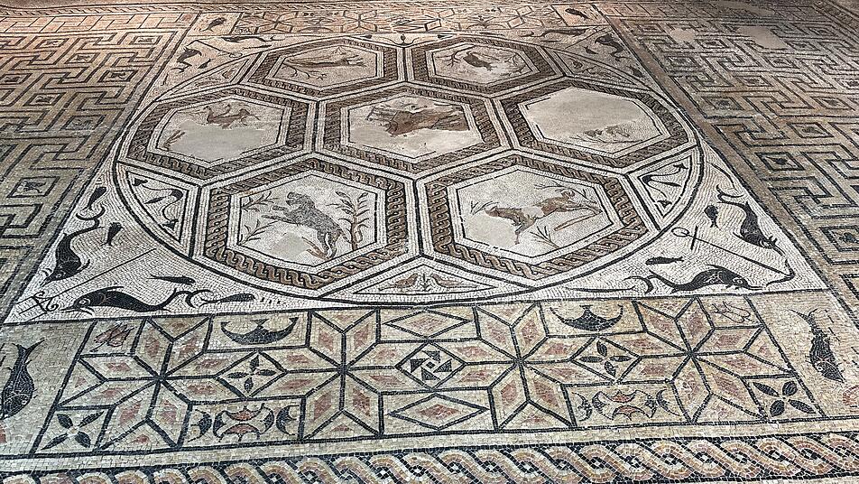 Sie besteht aus zwei Teilen, getrennt durch einen offenen Raum. Besonders bemerkenswert ist der große Empfangssaal, der vollständig mit einem wertvollen Bodenmosaik bedeckt ist, das Orpheus darstellt. Auch die Fußbodenheizung und das Thermalbad verdienen Beachtung.