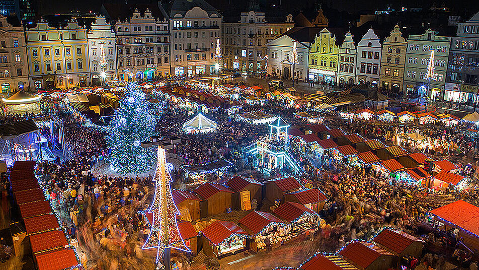 In Pilsen, dem Geburtsort des weltberühmten Bieres, findest du auf dem zentralen Platz der Republik (Náměstí Republiky) den Pilsener Weihnachtsmarkt. Neben zahlreichen Verkaufsständen mit Produkten sowie Vorführungen der Handwerkskunst können sich Besucher hier auch auf Stände mit regionalen Spezialitäten freuen. Besonderheiten wie eine lebendige Krippe mit echten Tieren und das ungewöhnliche "Massensingen" von Weihnachtsliedern, bei dem jedes Jahr Tausende mitmachen, erwarten dich.