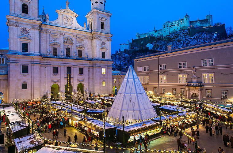 Der Salzburger Christkindlmarkt gilt als einer der ältesten Weihnachtsmärkte der Welt. Knapp eine Million Besucherinnen und Besucher aus der ganzen Welt kommen jedes Jahr. Am Domplatz und am Residenzplatz der Salzburger Altstadt stehen die traditionellen Hütten. Angeboten werden überwiegend Produkte aus Salzburg und Umgebung und regionale "Schmankerl".