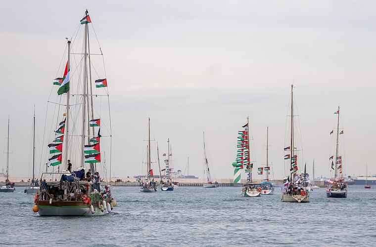 Dutzende Schiffe mit Aktivisten aus zahlreichen Ländern an Bord waren am Sonntag aus von Sizilien aus Richtung Gazastreifen in See gestochen. Die Organisation sprach von der größten Flottille, die jemals versucht habe, den Gazastreifen zu erreichen.