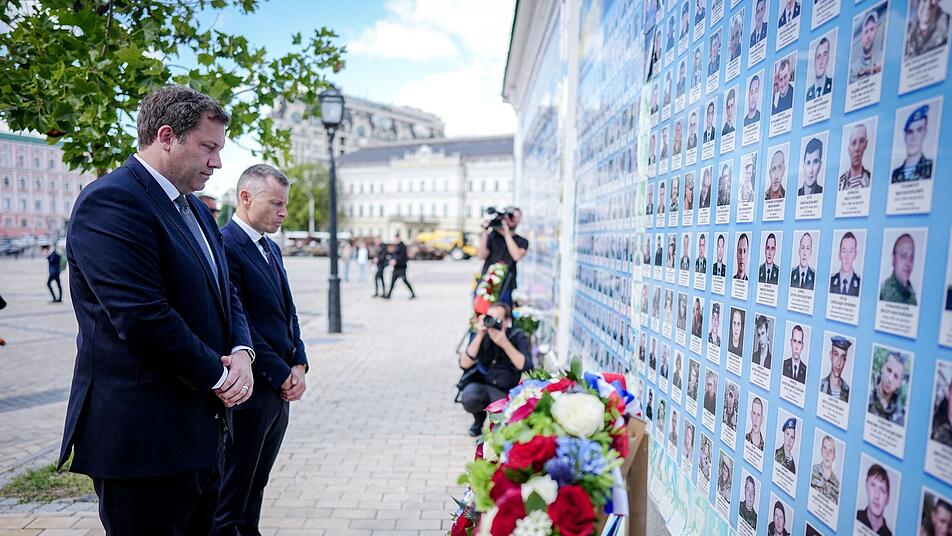 Er besuchte auch den zentralen Michaelplatz. Dort wurden vormittags kaum 50 Meter von Klingbeil Särge mit getöteten Soldaten in Trauerprozessionen in die Michaelskathedrale gebracht. Er gedachte danach zusammen mit seinem ukrainischen Amtskollegen Serhij Martschenko der im Krieg Getöteten.