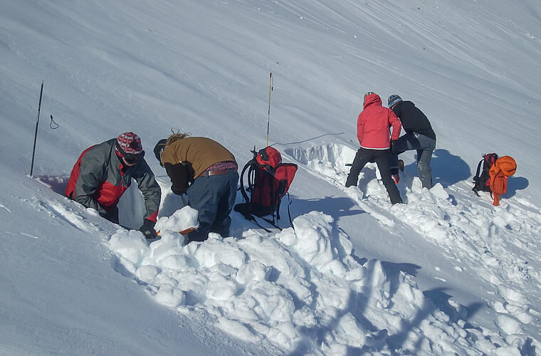 Studenten legen Schneegruben an, um in der lawinengefährdeten Saison die Stabilität der Hänge zu überprüfen (Symbolbild) ...