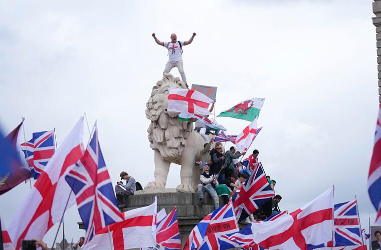 Angeführt und organisiert wurde der Aufzug im Zentrum Londons von dem bekannten britischen Rechtsextremisten Tommy Robinson. Auf Plakaten und Fahnen waren Slogans für eine schärfere Asylpolitik - etwa «Stoppt die Boote» oder «Schickt sie nach Hause» - zu lesen, wie unter anderem der Sender Sky berichtete. Am Abend schätzte die Polizei, dass zwischen 110.000 und 150.000 Menschen teilgenommen haben.