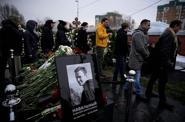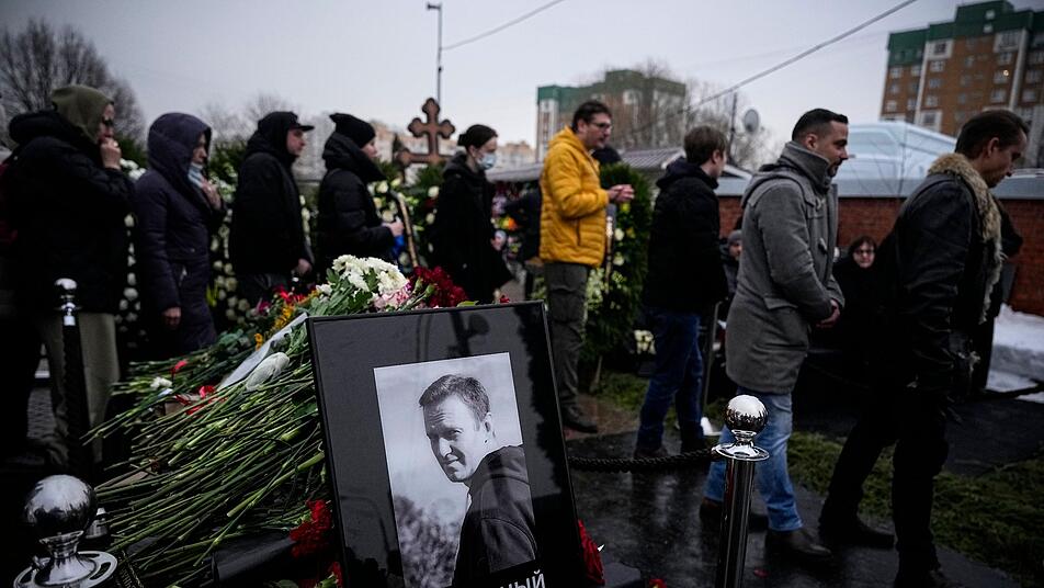 Auf Bildern von der Grabstätte war ein Meer von Blumen und Kränzen zu sehen - und ein russisch-orthodoxes Kreuz mit einem Foto von einem lächelnden Alexej Nawalny. Der Gegner von Kremlchef Wladimir Putin war nach Behördenangaben am 16. Februar im Straflager in der Polarregion gestorben.