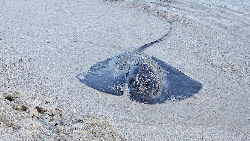Das Aquarium bittet Badegäste, die vom Aussterben bedrohten Rochen in Ufernähe nicht zu berühren und sofort die Notrufnummer 112 zu wählen. "Ihr Hinweis kann entscheidend sein - sowohl für das Wohl des Tieres als auch dafür, zu verstehen, was gerade geschieht", hieß es in einer früheren Mitteilung der Meeresschutzstiftung.