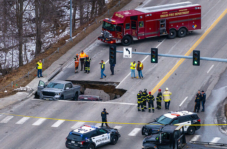Im US-Bundesstaat Nebraska hat sich an einer Kreuzung plötzlich die Erde aufgetan und zwei Fahrzeuge in ein riesiges Loch stürzen lassen. Aufnahmen aus der Stadt Omaha zeigten einen Pickup-Truck und ein etwas kompakteres Auto in dem Loch, das in einer mehrspurigen Straße klaffte. Die Fahrer der beiden Fahrzeuge blieben Berichten zufolge unverletzt.