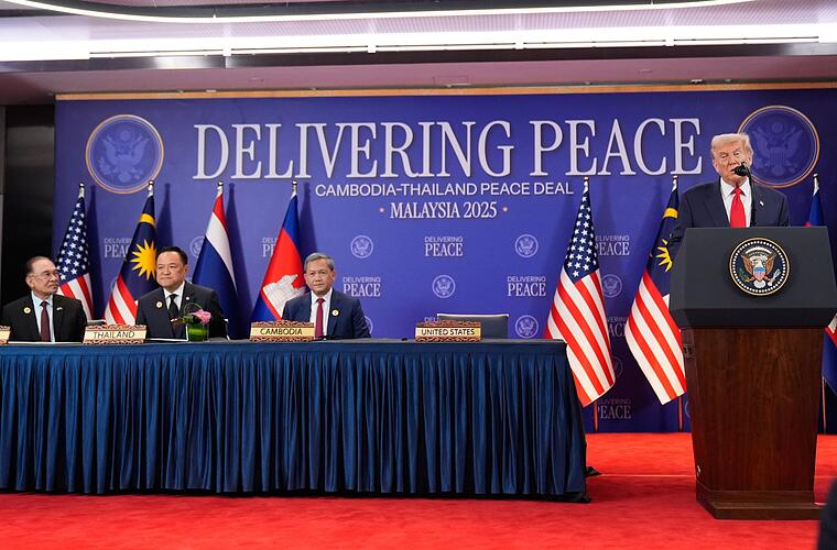 Drei Monate nach den schweren Kämpfen im Grenzgebiet zwischen Thailand und Kambodscha haben beide Länder im Beisein von US-Präsident Donald Trump ein Friedensabkommen unterzeichnet. Der thailändische Ministerpräsident Anutin Charnvirakul und sein kambodschanischer Amtskollege Hun Manet besiegelten die Vereinbarung am Mittag (Ortszeit) in der malaysischen Hauptstadt Kuala Lumpur. Trump war dort kurz zuvor als Gast des Gipfeltreffens der südostasiatischen Staatengemeinschaft Asean gelandet - es ist die erste Station seiner mehrtägigen Asienreise.