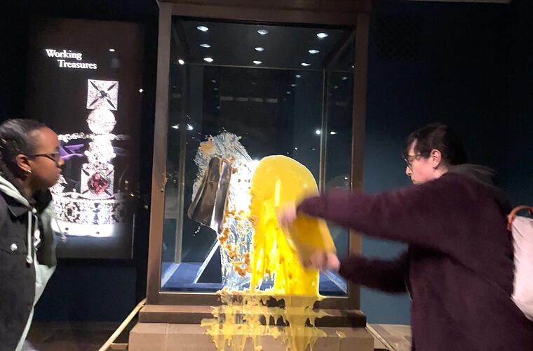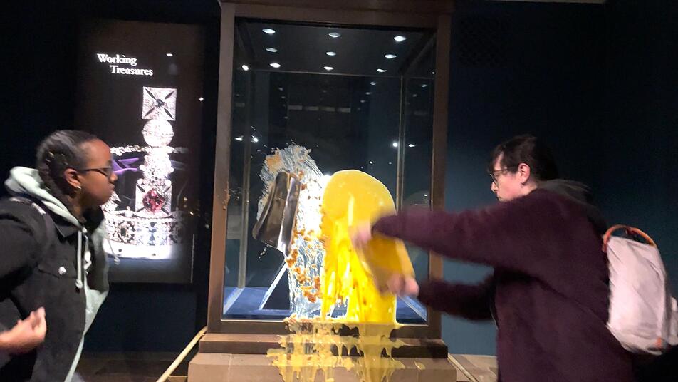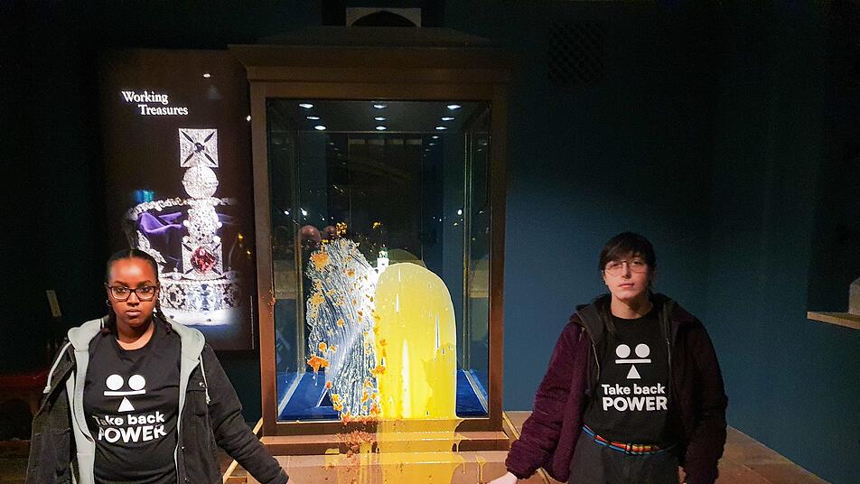 Es ist ein gewöhnlicher Samstagmorgen, als zahlreiche Touristen ehrfürchtig durch die dunklen Ausstellungsräume des Tower of London wandeln, in denen die britischen Kronjuwelen präsentiert werden. Unerwartet holt eine Person ein Kuchenblech hervor und verteilt dessen Inhalt auf der Vitrine der Imperial State Crown. Ein weiterer Aktivist gießt anschließend eine Flüssigkeit darüber, offenbar Vanillesoße. Symbolträchtiger könnte ein Protest das Vereinigte Königreich kaum erschüttern.