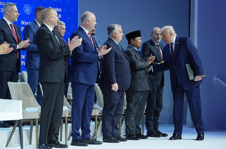 «Die Charta ist nun in Kraft und der Friedensrat eine offizielle internationale Organisation», betont Trumps Sprecherin Karoline Leavitt. Zuvor hat sie die Unterzeichner, die wie Schuljungen brav auf ihren Auftritt gewartet hatten, nacheinander an einen Tisch zur Signatur gebeten.