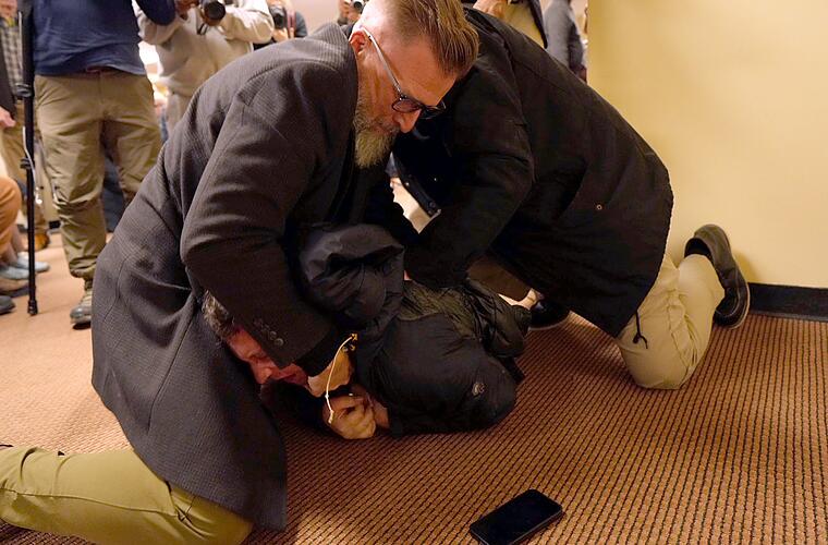 Videos des Vorfalls zeigen, wie der Angreifer eine Flüssigkeit auf Omar spritzt und sie beschimpft. Sicherheitskräfte überwältigen den Mann, bringen ihn zu Boden und führen ihn dann aus dem Raum. In den wenigen Sekunden, bevor ein Personenschützer eingreift, schien der Mann nicht zu versuchen, sich auf die unmittelbar vor ihm am Podium stehende Abgeordnete zu stürzen oder sie weiter tätlich anzugreifen.