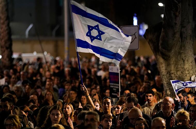Menschen nehmen in Tel Aviv an einer Solidaritätskundgebung für die von der Hamas entführten Geiseln teil.