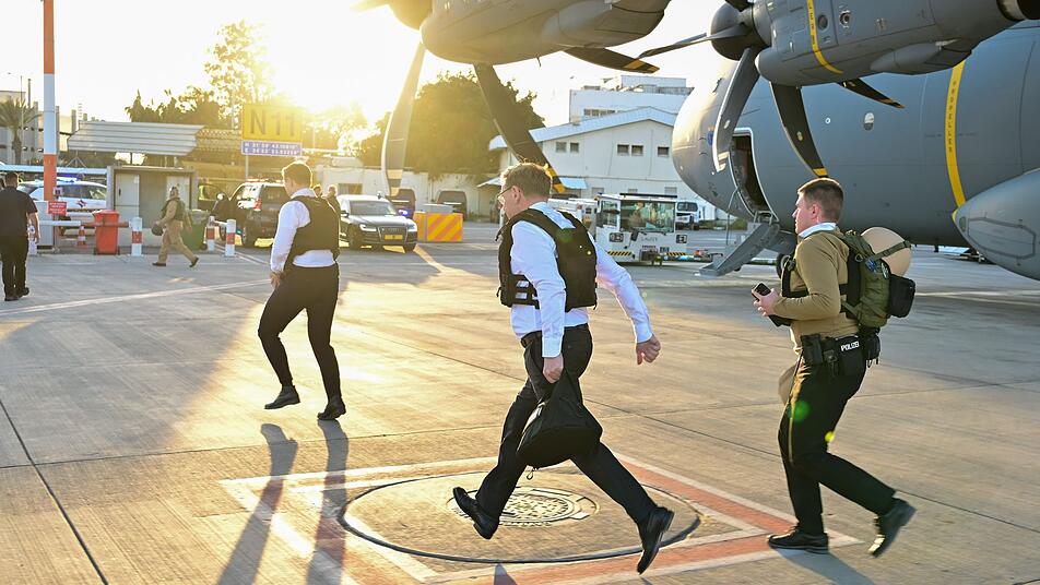 Wegen der erhöhten Gefährdungslage angesichts der andauernden und wiederholten Angriffe aus dem Iran sowie aus dem Libanon von der Hisbollah-Miliz mit Raketen und Drohnen auf Israel reiste der Minister nicht wie sonst üblich bei Reisen mit einem Airbus der Flugbereitschaft der Bundeswehr an, sondern mit einem Militär-Transportflugzeug der Bundeswehr vom Typ A400M.